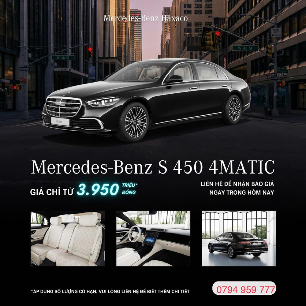Mercedes-Benz S 450 4MATIC, mẫu sedan hạng sang cỡ lớn biểu tượng, tiếp tục khẳng định vị thế dẫn đầu về công nghệ và tiện nghi. Với lịch sử lâu đời từ năm 1972, S-Class luôn là kim chỉ nam cho sự đổi mới. Giờ đây, một chương trình ưu đãi đặc biệt mở ra cơ hội tuyệt vời để sở hữu chiếc xe danh giá này với mức giá cực kỳ hấp dẫn, biến đây thành thời điểm vàng cho những ai tìm kiếm đỉnh cao của sự sang trọng và an toàn.
