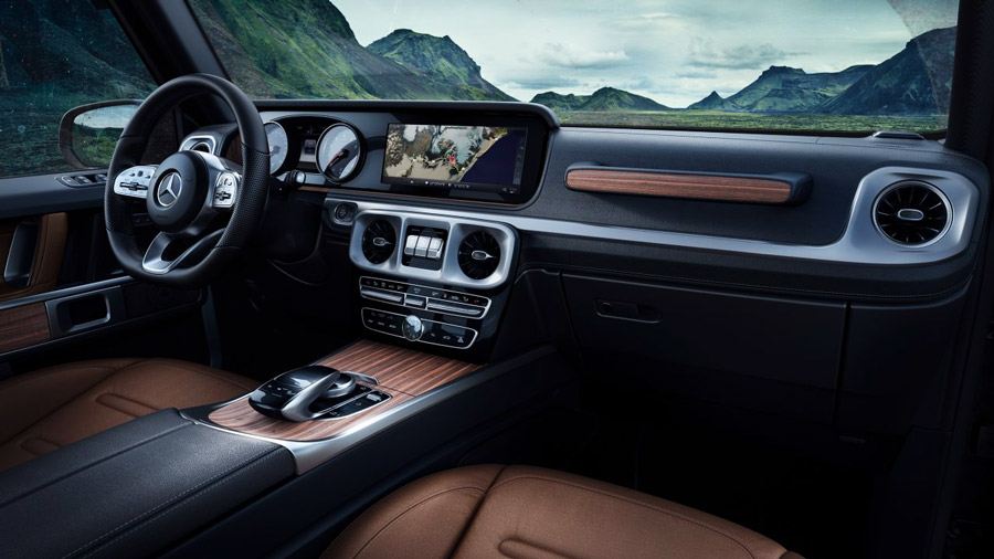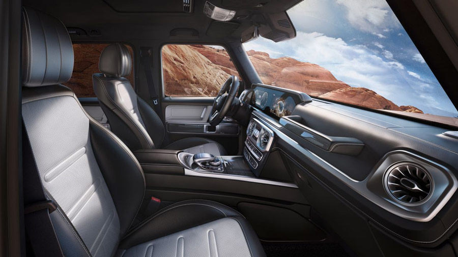 Nội thất được thiết kế lại hoàn toàn đạt tới một cấp độ mới. Không còn nghi ngờ gì nữa, ngôn ngữ thiết kế và tỷ lệ trong nội thất mang đậm phong cách của xe G-Class: tự tin, góc cạnh, mang tính biểu tượng.